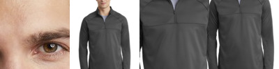 Designed to lock in warmth, this fleece has brushed softness and a 1/2 zip placket for easy on/off. The design features a zip-up blade collar, zippered pockets and contrast mesh binding at the cuffs and hem. A contrast heat transfer Swoosh design trademark is on the left chest. Made of 7-ounce, 100% polyester Therma-FIT fabric.