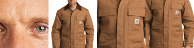 - Carhartt label sewn on left chest pocket